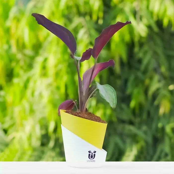 Calathea Roseopicta With Yellow Self Watering Pot