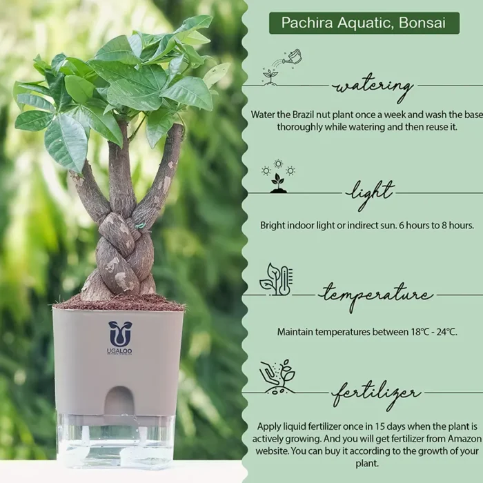 UGALOO Braided Pachira Aquatic Plant With Self Watering Pot