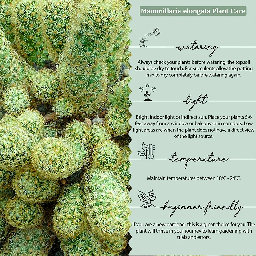 Mammillaria elongata ‘Ladyfinger’ Cactus Plant with self watering pot